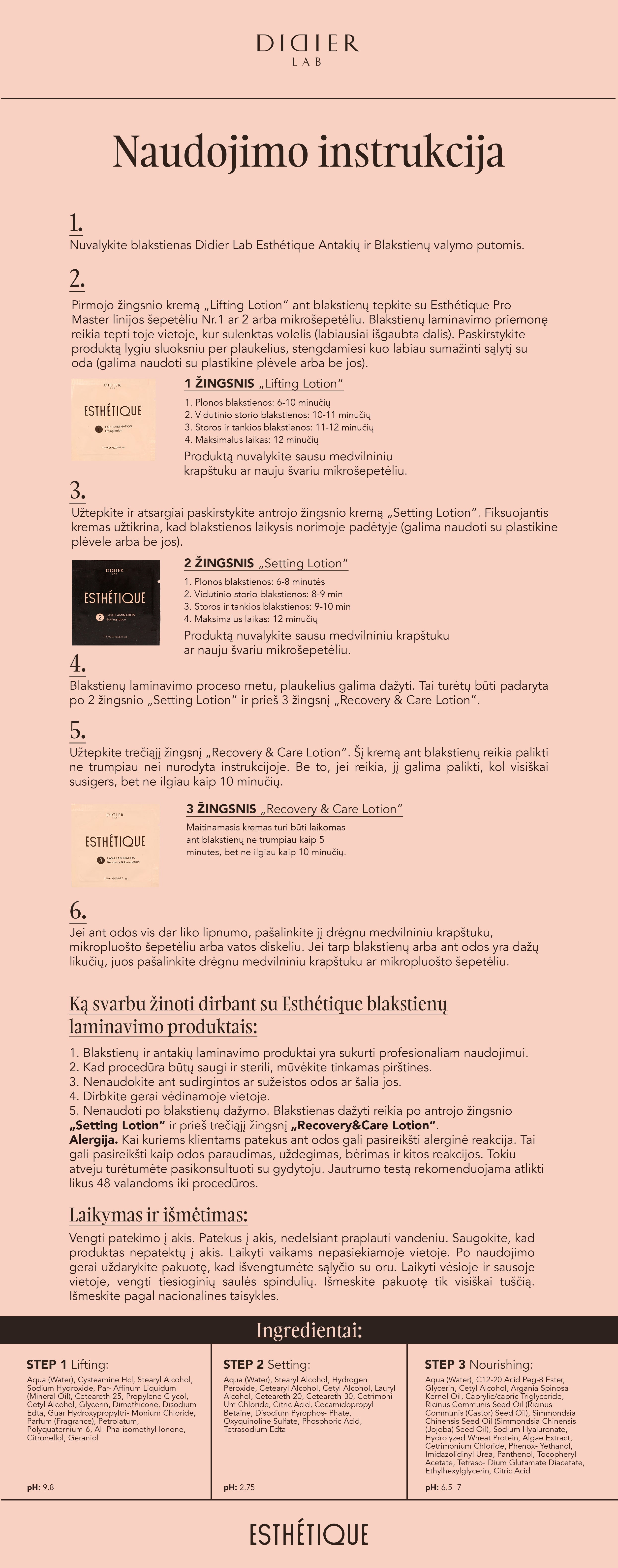 Ką svarbu žinoti dirbant su Esthétique blakstienų laminavimo produktais: