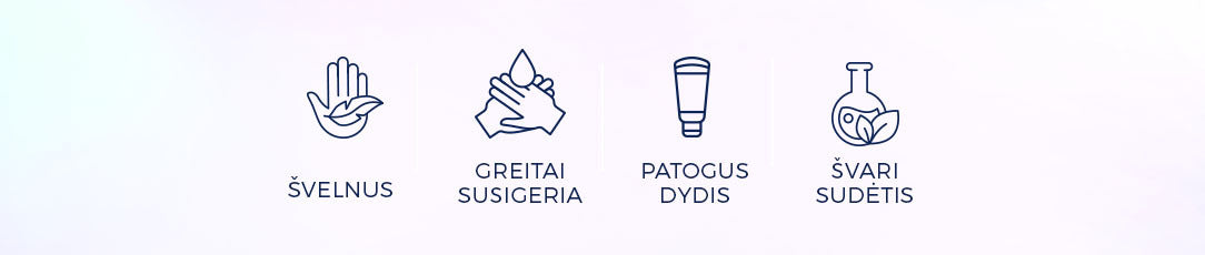 - Nedidelį kremo kiekį tolygiai paskirtykite ant rankų, švelniai įmasažuokite į odą.