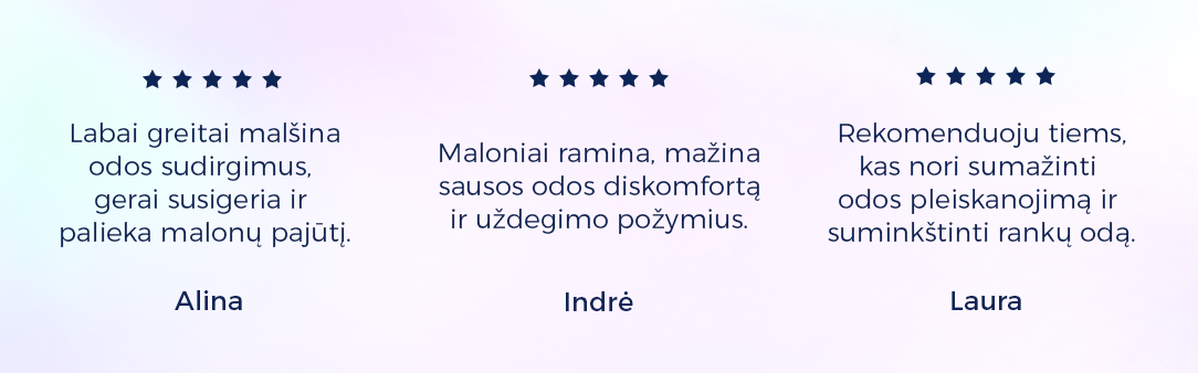 - Kremas skirtas nuraminti odą ir padėti išlaikyti švaros pojūtį. Sudėtinių dalių kompozicija drėkina, ramina ir pagerina odos komfortą.