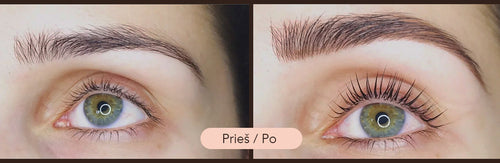 Išimkite kontaktinius lęšius. Norint pasiekti geriausius rezultatus, prieš dažymą reikia pašalinti likučius ar nešvarumus naudojant Didier Lab Esthétique antakių ir blakstienų putas.