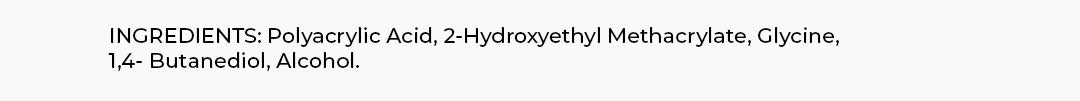 Polyacrylic Acid, 2-Hydroxyethyl Methacrylate, Glycine, 1,4- Butanediol, Alcohol.