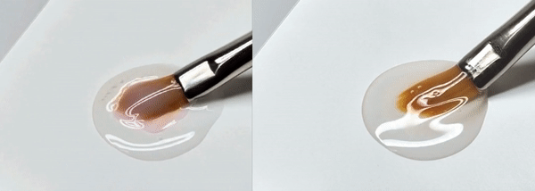 1. Įlašinkite keletą gelio lašelių, panardinkite teptuką ir spaudžiamaisiais judesiais išstumkite jame susikaupusios senos medžiagos ar pigmento likučius. Jei reikia – procedūrą pakartokite.