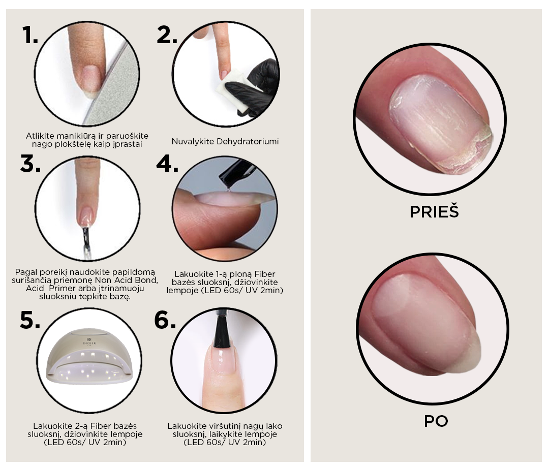 Bazė turi būti kieta, bet kartu ir elastinga, idant gelinis nagų lakas neskilinėtų.
