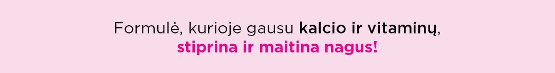 - Sudėtyje esantis vitaminas E padeda apsaugoti nagus nuo išorinių veiksnių ir palaiko jų bendrą būklę. Praturtinta kalcio pantotenatu, žinomu dėl savo nagus puoselėjančių savybių. Skirta įvairiems nagų tipams įskaitant tuos, kurie linkę lūžinėti.