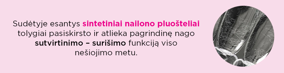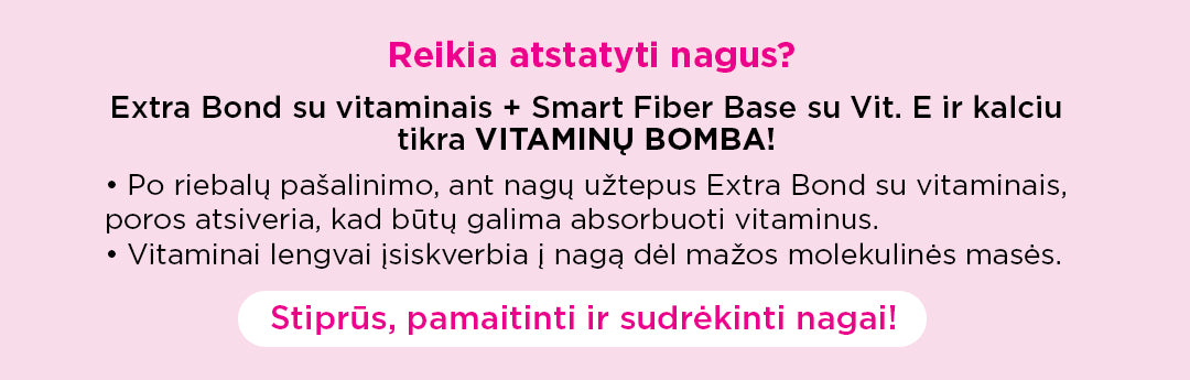 - SMART technologija: sudėtyje esantys sinteniniai stiklo pluoštai tolygiai pasiskirsto ir užtikrina geresnę nago sutvirtinimo funkciją.