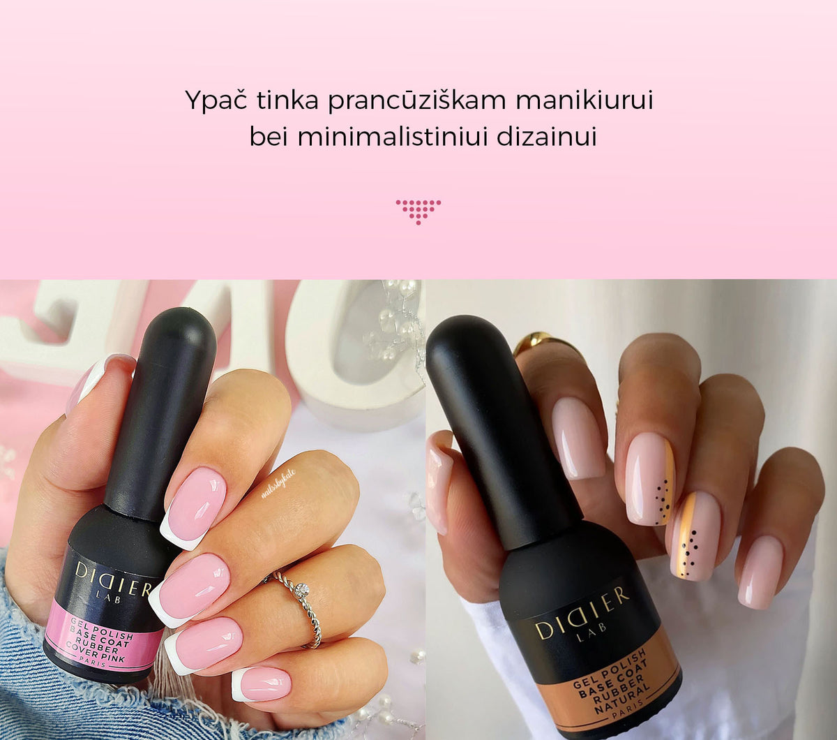 - Puikus pasirinkimas prancūziškam lakavimui, nes bazių atspalviai yra tobulai tinkantys šiam lakavimo stiliui.